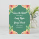 Este elegante casamento floral, salvo o convite de data é perfeito para um casamento de verão moderno. A design romântica apresenta um belo quadro floral de flor silvestre de aquarela com elegante caligrafia branca sobre fundo verde.