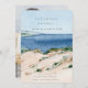 Casamento de Verão na Praia do Oceano Moderno - Salve a Data apresenta uma paisagem de praia em aquarela deslumbrante com tipografia moderna para um visual minimalista. Todo o texto é editável. Sua foto favorita é apresentada no verso do convite.
