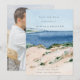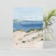 Casamento de Verão no Oceano na Praia Moderno Save the Date apresenta uma paisagem de praia em aquarela deslumbrante com tipografia moderna para um visual minimalista. Todo o texto é editável. Sua foto favorita é apresentada no verso do convite.