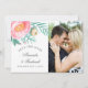 Casamento exótico, cor-de-rosa e amarelo, à hora de Verão, salvam-se os cartões com fotos de data que contêm peonias e folhagem tropical.