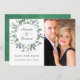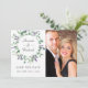 Cartões de save the date de casamento de dólar prateado de folha verde e eucalipto projetados para serem personalizados rápida e facilmente para os detalhes do seu evento.