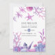 Convites de casamento de praia com temas cor-de-rosa e azuis, com samambaias, algas, corais, conchas e estrelas-do-mar, feitos para serem rápida e facilmente personalizados de acordo com suas especificidades de evento.