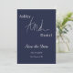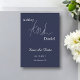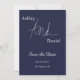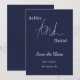 Este elegante casamento azul marinho salvar a data é perfeito para um casamento moderno. o simples design apresenta uma caligrafia branca elegante num fundo azul marinho.
