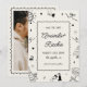 Celebre o seu amor com este Save the Date de casamento caprichoso, lúdico e retrô! Com um esboço rabiscado com laços divertidos, moldura ondulada, bola de discoteca, coquetel e bolo de casamento, este visual de coquete francesa vintage exala vibrações boho-chic. Personalize com uma foto personalizada no verso e cores editáveis para um toque único. Perfeito para casais modernos, elegantes e trendy. Disponível como cartão impresso ou download digital instantâneo para uma celebração descolada e divertida!