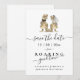 Este convite de "Salve a Data" de casamento divertido de dinossauros do Jurássico é perfeito para casais que procuram adicionar um toque divertido e temático de dinossauros ao anúncio do convite de "Salve a Data" do casamento. Com ilustrações encantadoras em aquarela de um noivo e uma noiva T-Rex engraçados em tons marrons bege sobre um fundo branco elegante, este design da era Jurássica captura o espírito alegre do seu grande dia. A tipografia moderna em script adiciona um toque de elegância, mantendo um clima leve. Fácil de personalizar com seus nomes e data de casamento, este convite único certamente vai deliciar seus convidados. Arte original da talentosa Catherine Sweetman. Perfeito para um momento inesquecível!
