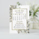 Estes cartões salve a data vão avisar seus amigos e família sobre seu próximo casamento. Eles apresentam uma design de ouro e verde-sábio rústico com um calendário para o mês do seu casamento e um coração à volta do seu dia especial. Há pinturas feitas à mão de aquarelas de folhas de eucalipto e galhos de pinheiro. O título é escrito em uma caligrafia antiga com espaço para os nomes do casal, data do casamento, local e site.