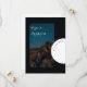Um círculo simples com texto curvo sobrepõe os detalhes do casamento in a box.