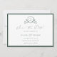 BRUNSWICK CREST, salvem a data. Vintage inspirou a crista do monograma de arte floral botânica. Recursos, uma elegante combinação de estilos de design de tipografia verde-escura e estilo ousado. Cor verde sólida de apoio.