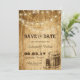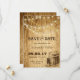 Casamento de campo Salve a data em um fundo de imagem de madeira com luzes de cordas, botas de cowboy e barril. Se você clicar no botão "Personalizar", poderá mover ou redimensionar imagens. Você pode até apagar as botas e o barril se não quiser. Mova o texto ao redor e redimensione (dimensionar) as imagens. Este cartão corresponde a uma coleção na minha loja.