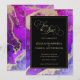 Luxuoso rosa e roxo Guarde o cartão Data com um sotaque de ouro/latão rico em espirais de cor líquida. Sentar no topo da arte é uma modelo fácil de editar; à qual podem ser adicionados os nomes da noiva e do noivo. Em seguida, substitua o texto do modelo pela data, hora e local do casamento. Um Casamento Dourado de Abstrato Púrpura , cor-de-rosa-preto, salva a data. Arte original de tinta a álcool abstrato da artista internacional Pauline Benjes.