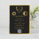 Um design de casamento místico celestial em preto e ouro. Um simples design de tarô que usa um fundo de estrelas com lua crescente de ouro, sol celeste e monograma cardíaco correspondente. Um elegante design celestial preto e dourado com tipografia de escrita clássica. Um casamento moderno com temas de tarot salve a design do cartão com elementos modernos. Os convites de casamento e outros artigos de papelaria também estão disponíveis.