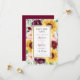 Estes cartões salve a data apresentam um design de aquarela com girassóis, flores de marsala com borboleta e uma falsa borda de ouro. A parte de trás das cartas tem um fundo burguês e um motif floral bornu de girassol correspondente. Personalize estas cartas com o seu próprio texto. Itens correspondentes também estão disponíveis. Por favor, visite nossa loja.