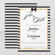 Listras brancas e pretas elegantes e um roteiro embrulhado em um quadro dourado. Faça uma impressão duradoura para o seu dia de casamento com este design eterno. O gracioso arco preto adiciona um toque refinado, enquanto a tipografia cuidadosamente selecionada combina o estilo clássico e moderno. Este design versátil coordena-se lindamente através de sua suíte de casamento completa, desde salvar a data, convites, obrigado você e colocar cartões. Para obter suporte personalizado e personalizado para qualquer elemento design, entre em contato com remidevandesigns@gmail.com. RemideVan©