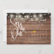 Este cartão de salvamento bonito apresenta luzes de cordas e um calendário e um coração de amor bonito a ouro destacando sua data especial em um fundo de painéis de madeira rústica. O inverso tem detalhes adicionais sobre a data, incluindo o endereço do seu site de casamento. Projetado por This isnotme © ***PARA MOVER O CORAÇÃO PARA A DATA ESPECIAL, OLHE PARA A DIREITA DA IMAGEM DO PRODUTO PARA ONDE DIZ "PERSONALIZAR O MODELO". SE CLICAR NO TEXTO AZUL "DETALHES", VOCÊ VERÁ ONDE PERSONALIZA O TEXTO. NA PARTE INFERIOR, ELA DIZ "CLIQUE PARA PERSONALIZAR MAIS". CLIQUE NISSO E VOCÊ PODERÁ MOVER O CORAÇÃO PARA A DATA QUE DESEJAR.***