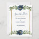 Reserve A Data Casamento Dourado de Script Elegante Floral Azul e