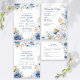 Anuncie o seu casamento em estilo com este elegante cartão azul e dourado Guarde o cartão de Data. Apresentando florais de aquarelas em tons de azul empoeirado, ouro mole e marfim, este design clássico é emparelhado com roteiros refinados e fontes serif para um aspecto romântico e eterno. Perfeito para casamentos formais, de jardim ou tradicionais. Personalize facilmente os seus nomes, data e detalhes de eventos. Convites de casamento e suíte de papelaria de cheio estão disponíveis em nosso compro.