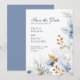 Informe aos seus convidados para marcar seus calendários com este elegante cartão vertical Salvar Data. Projetado para corresponder ao nosso popular Convite para Casamento Floral e Azul Elegante Dourado, este cartão apresenta florais aquosos em tons de azul empoeirado e ouro, emparelhados com eterno e fontes serif. Perfeito para casamentos clássicos, românticos ou de jardim. Personalize com seus nomes, data do casamento e detalhes do evento. Este design coordena-se perfeitamente com o pacote de artigos de cheio, incluindo convites, placas RSVP e muito mais — disponível em nosso compro.