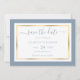Casamento elegante, azul empoeirado e ouro, salve os cartões de data. Personalizar facilmente online. Os itens disponíveis para complementar esses casamentos minimalistas, mas elegantes, azuis e dourados salvam os cartões de data. Para pedidos personalizados, envie-nos uma mensagem através do bate-papo Zazzle.