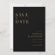 Casamento moderno salve o convite de data com design de tipografia elegante minimalista em preto e dourado. Personalize facilmente com todas as suas informações para cartões salve a data de casamento personalizados.