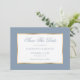 Casamento empoeirado, azul e ouro, salve o cartão de data com detalhes de casamento, dentro um quadro de ouro. Casamento de ouro e azul empoeirado salve o cartão de encontro.