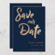 Casamento Dourado do Elegante Elegante Minimalista Faux Salve a data. Cartões salve a data Elegantes de Casamento com fundo escuro e SALVAR A DATA escrita em fonte bonito em ouro falso rosa. Esses cartões salve a data minimalistas são perfeitos para anunciar seu grande dia. Enviar esses cartões de na moda para a família e amigos. Personalize as cartas mudando os nomes da noiva e do noivo e a data do casamento. Para mais personalizações, contacte-me em mypaperlove2021@gmail.com