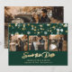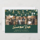 Cartões salve a data de fotos de casamento emerald green e gold personalizados elegantes com uma letra moderna. Nosso casamento salvou a data mostra uma coleção de fotos de 4 imagens contra um fundo verde esmeralda enfeitado com luzes de cordas. Personalize facilmente este esmeralda verde e ouro, salve o cartão de data com suas imagens e detalhes de casamento, incluindo um site de casamento, se desejar. Para pedidos personalizados, envie-nos uma mensagem.