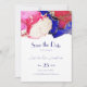 Casamento lavado com tinta Salve o cartão de Data em rosa, roxo e ouro. Este convite de casamento vibrante apresenta um laço artístico de tinta colorida que é acentuado com ouro. Adicione facilmente seus detalhes de casamento ao modelo usando as ferramentas de personalização do Zazzle. Estamos felizes em ajudar se você precisar de ajuda. Entre em contato conosco em amoreamore@paulinebenjes.com. Casamento Dourado rosa Salve a data.