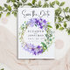 Anuncie o grande dia com este cartão de data moderno e único. Este design na moda apresenta uma coroa verde púrpura de flores geométricas com script e tipografia clássica. Personalize o cartão com seus nomes, data do casamento e quaisquer informações adicionais. Para mais personalização, entre em contato comigo em kbasandra@gmail.com.