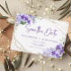 Anuncie o grande dia com este cartão de data moderno e único. Este design na moda apresenta uma coroa verde púrpura de flores geométricas com script e tipografia clássica. Personalize o cartão com seus nomes, data do casamento e quaisquer informações adicionais. Para mais personalização, entre em contato comigo em kbasandra@gmail.com.