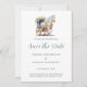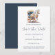 Cartão de Noivado de Carruagem Elegante Puxada por Cavalos. Estamos nos casando, então por favor reserve a data para uma celebração elegante enquanto trocamos votos cercados pelas ricas tonalidades de um casamento romântico. Nosso casamento terá uma linda carruagem puxada por um belo cavalo branco em cores azuis românticas, tudo acentuado pelo charme atemporal da caligrafia cursiva. Abrace a calidez e a elegância da estação conosco neste dia especial.