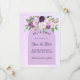 Um moderno e elegante Salve a Data para um casamento. Violeta de cor d'água, fundo de lavanda e uma armação de arco. Decorado com flores violetas e roxas. Personalize e adicione uma data e nomes. O texto: Salvar a Data é gravado com um script de estilo com letra de tendência grande.