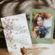 Boho Whimsical Wildflower Fairytale Elegant Wedding Salve o Convite Bohemiano, organizou um convite floral romântico com flores silvestres e botânicos coloridos pastéis, de cor d'água. Por favor, edite a parte de trás do convite com a sua foto. A cor verde sage é linda para casamentos de jardim de conto de fadas e casamentos florais de boho. Convites editáveis para primavera, verão, outono (outono) e casamentos no inverno.