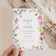 Boho Whimsical Wildflower Fairytale Elegant Wedding Salve o Convite Bohemiano, organizou um convite floral romântico com flores silvestres e botânicos coloridos pastéis, de cor d'água. Por favor, edite a parte de trás do convite com a sua foto. O único fundo de flor selvagem é lindo para casamentos de jardim de conto de fadas e casamentos florais de vassoura. Convites editáveis para primavera, verão, outono (outono) e casamentos no inverno.