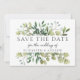 Você tem o anel, você definiu a data e agora tudo que precisa é salvar as datas para enviar aos amigos e à família. O planejamento de casamento pode ser complicado, então envie esses cartões para ter certeza de que seus convidados estão em aviso para seus próximos núpcias enquanto você finaliza os detalhes. O design é elegante e chique e apresenta uma bonito aquarela verde estrutura botânica. Facilmente personalizado!