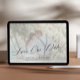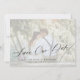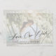 Casamento moderno romântico de chic salve a modelo com sua foto personalizada em uma camada transparente branca de moda com caligrafia colorida em preto. ++++++++++ Fácil de personalizar com seus detalhes e imagens em ambos os lados! +++++++++ Adequado para qualquer tema de casamento elegante de estação.
