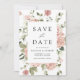 Cartões salve a data florais elegantes com seus nomes, data de casamento e local enquadrado por uma borda de rosas de aquarelas em tons de rosa-pincel e rosa empoeirado com folhagem verde-escura. O casamento romântico de rosa salvando os cartões de data são perfeitos para os seus próximos casamentos de primavera e jardim de verão!