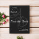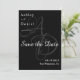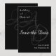 Este elegante casamento preto e branco, salvar a data é perfeito para um casamento moderno. o simples design apresenta uma caligrafia branca elegante num fundo preto.