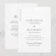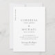 Convite de casamento moderno com design simples e minimalista, combinando fontes serif clássicas e uma escrita elegante.