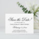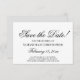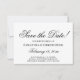 Este belo cartão Save the Date é simples, na moda, clássico e elegante. Ele apresenta letras de script antigas com tinta preta em um fundo branco. A parte traseira da placa é uma cinza pálida. Bonita, subestimada, mas eterno e formal.