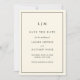 Simples marfim / creme salve o cartão de data com um design moderno, mas elegante, com seu monograma de duas letras no topo e seus detalhes de casamento cercados por uma fina borda. As fontes e as cores de fundo podem ser alteradas para qualquer cor desejada. Um design chic e na moda que é excelente para um casal minimalista.
