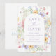 Anuncie seu casamento com este elegante cartão de "save the date" de jardim de flores silvestres pastéis, apresentando uma romântica moldura floral de arco de aquarela em tons suaves de roxo, rosa, amarelo, azul e branco com folhagens delicadas. O gracioso design floral envolve a sua mensagem em letras roxas lavanda, criando um visual atemporal e arejado que é perfeito para casamentos de primavera e verão, cerimônias de jardim e casamentos ao ar livre. Este "save the date" de flores silvestres pastéis combina perfeitamente com o conjunto de convites correspondente e oferece aos convidados um primeiro vislumbre encantador do dia do seu casamento.