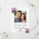 Um casamento elegante Salve o Cartão de Datas com 1 foto especial do casal completada por maravilhosas caligrafias elegantes e rosas roxas. Você pode personalizar este cartão com seus detalhes pré-casamento.