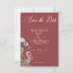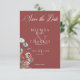 Celebre seu novo começo com a beleza botânica do inverno. Este design de cartão de data salvo apresenta um quadro casual de pinho, eucalipto e bagas em sábado, verde-pinho e vermelho-vivo rico em um fundo vermelho rico. Elegante e perfeito para a estação. Criado pela imprensa simplesmente de farmácia.