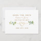 Ponha o tom para o seu casamento botânico moderno com o nosso elegante sábio verde e branco para salvar o convite de data. Apresentando um eucalipto exuberante verde e acentuado com um simples roteiro de caligrafia, ele exude elegância do eterno. Completado com um coração brilhante de corda de ouro, é a maneira perfeita de anunciar seu dia especial com estilo e sofisticação.