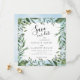 Esta design está enquadrada em eucalipto e verde, com um sabiá bonito anunciando seu próximo casamento. Um belo céu azul de aquarela fornece o pano de fundo. O convite para salvar a data está terminado com um simples roteiro de tipografia preto elegante. O seu convidado encontrará um fundo correspondente no fundo, com um som esperto de verde a aparecer a flutuar entre as nuvens.