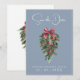 Casamento festivo de inverno azul-poeirento Salva o Cartão de Datas - Folhagem Elegante em Matizes Russos Evergreen. Aceite o encantamento da época com o nosso moderno e empoeirado casamento azul de Natal, salvo-o-encontro, enfeitado nas cores ricas e festivas do vermelho e do verde. Este elegante cartão salva-vidas apresenta delicados sotaques folínicos, e bagas vermelhas que evocam a beleza do charme verde do inverno. Com uma mistura perfeita de estilo moderno e calor rústico, este cartão salva-vidas dá o tom para uma celebração alegre que captura o espírito do Natal. Compartilhe o seu dia especial com os entes queridos através deste cartão de salvamento do casamento encantador, onde matizes vermelhos e verdes infundem a ocasião com a magia dos feriados.
