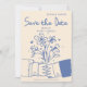 Reserve A Data Casamento Floral Azul Desenhado à Mão Caprichoso