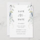 Reserve A Data Casamento Floral Azul e Branco Elegante