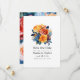 O convite para o casamento floral azul, laranja, amarelo e vermelho salva a data. Ideal para qualquer tema ou casamento de jardim.