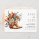 Amaze seus convidados com este tema ocidental, salve a data com lindas flores e botas elegantes. Basta adicionar os detalhes do seu evento neste modelo fácil de usar para torná-lo um tipo de guardar o cartão de data.